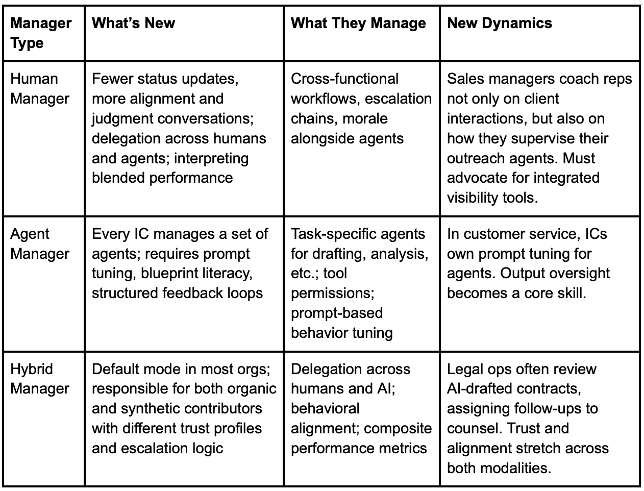 The rise of AI agents doesn’t remove the need for knowledge workers, it transforms their role. The traditional IC-manager hierarchy starts to blur as every knowledge worker begins to manage some combination of people, agents, or both.