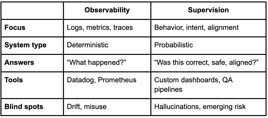 Observability tells you what happened. Supervision tells you whether it should have happened.